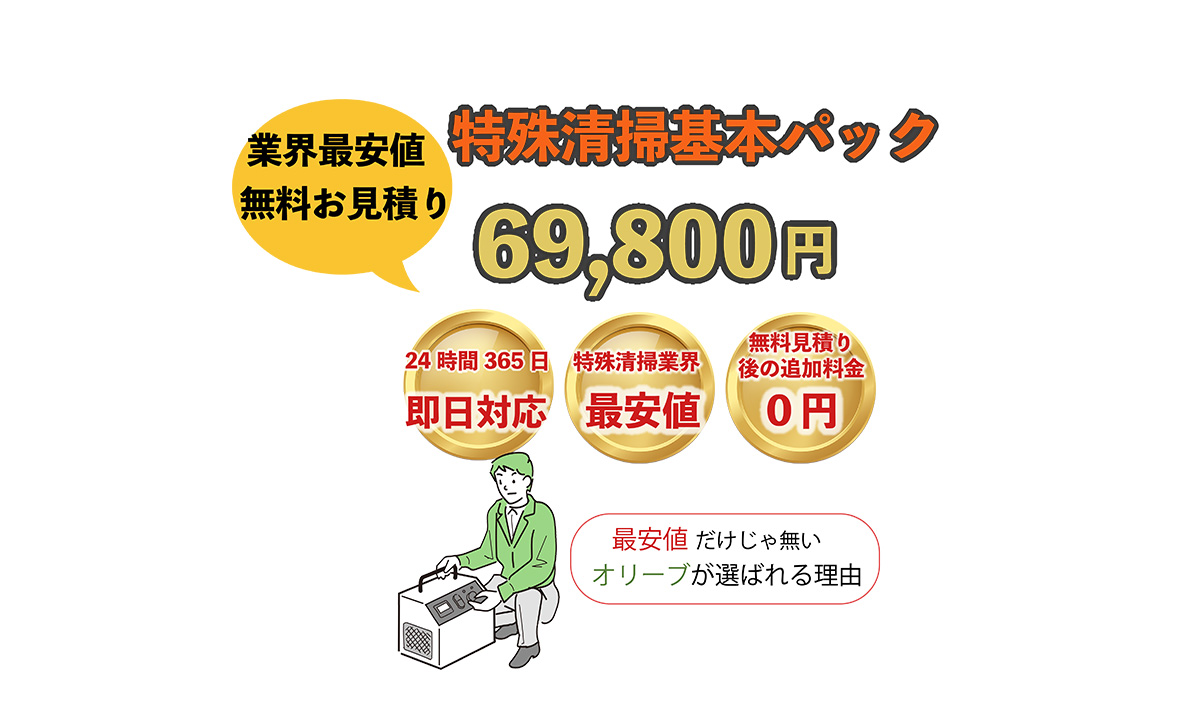 近年、孤独死で亡くなられる方は増加傾向にあり、特殊な清掃をしないとその場所に住めないと言ったケースが全国的に増えて来ました。